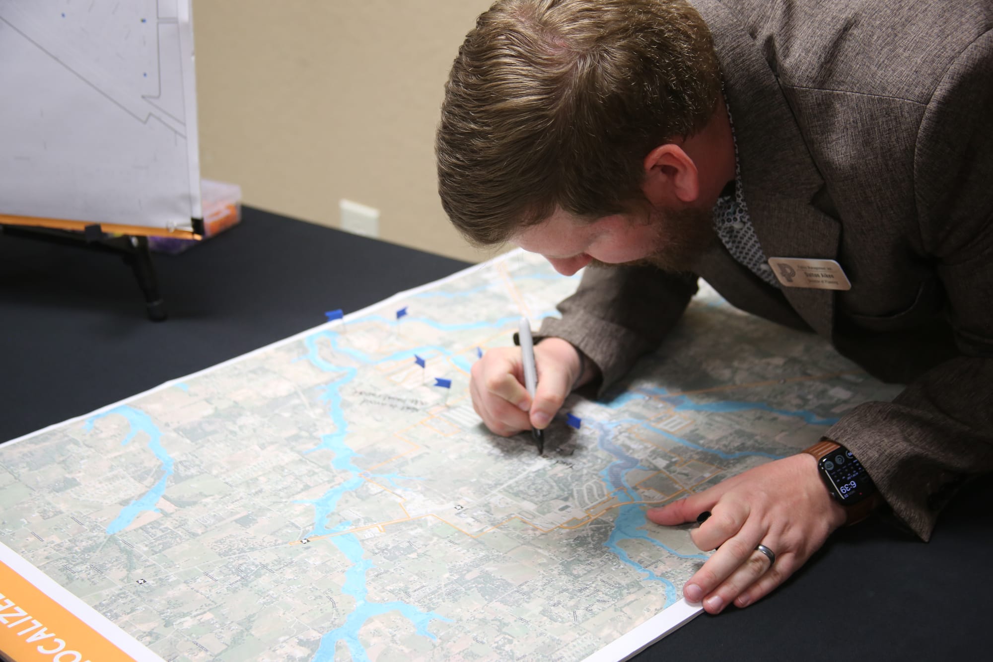 Additional stations featured maps where residents could identify concerns related to roads and land infrastructure, engaging in conversation with Dalton Aiken, the director of planning with Public Management.