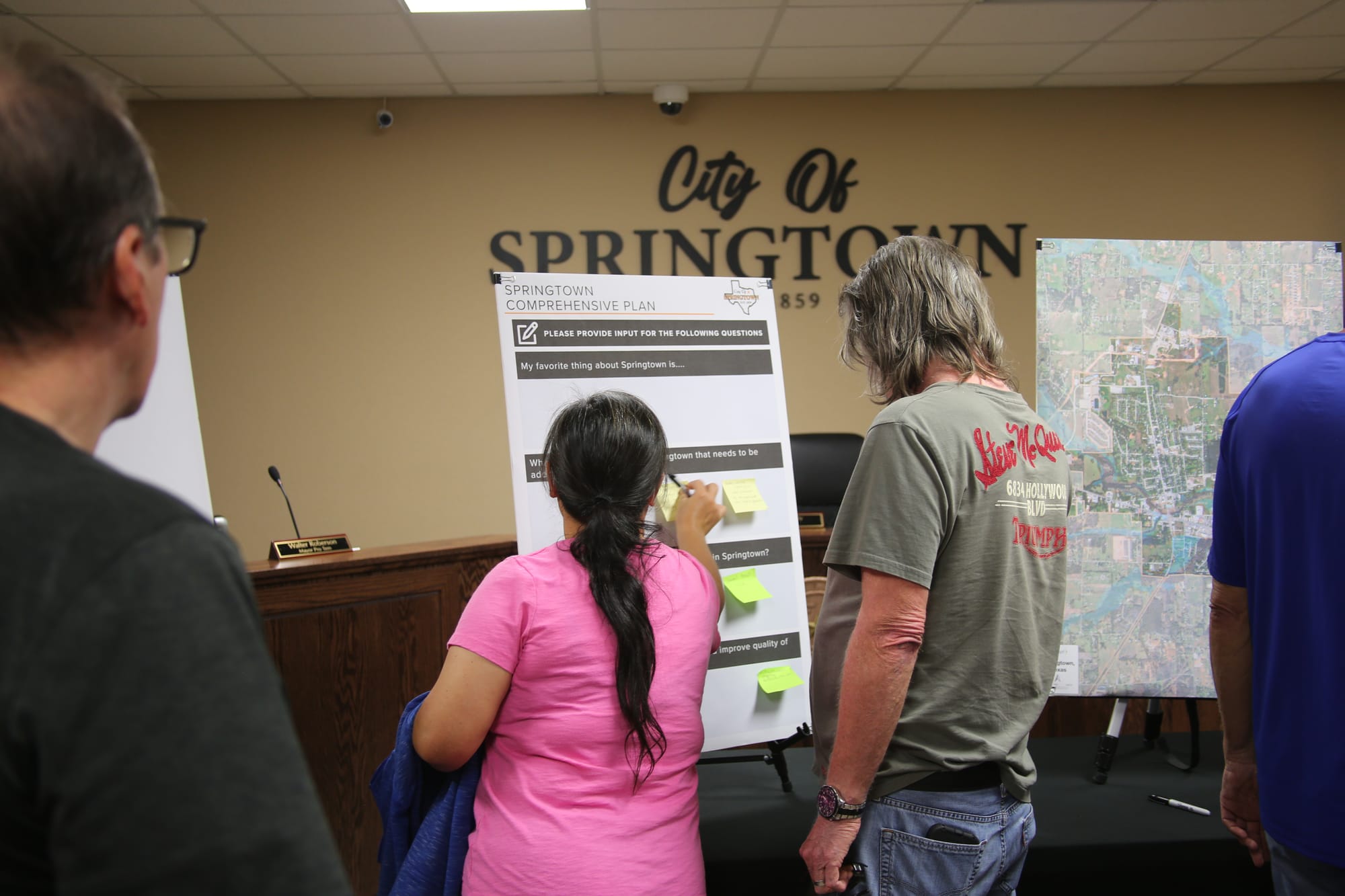 Participants were also invited to share written feedback on boards, responding to prompts about what they value most about Springtown, traditions that should be preserved and any issues they feel are not currently being addressed.