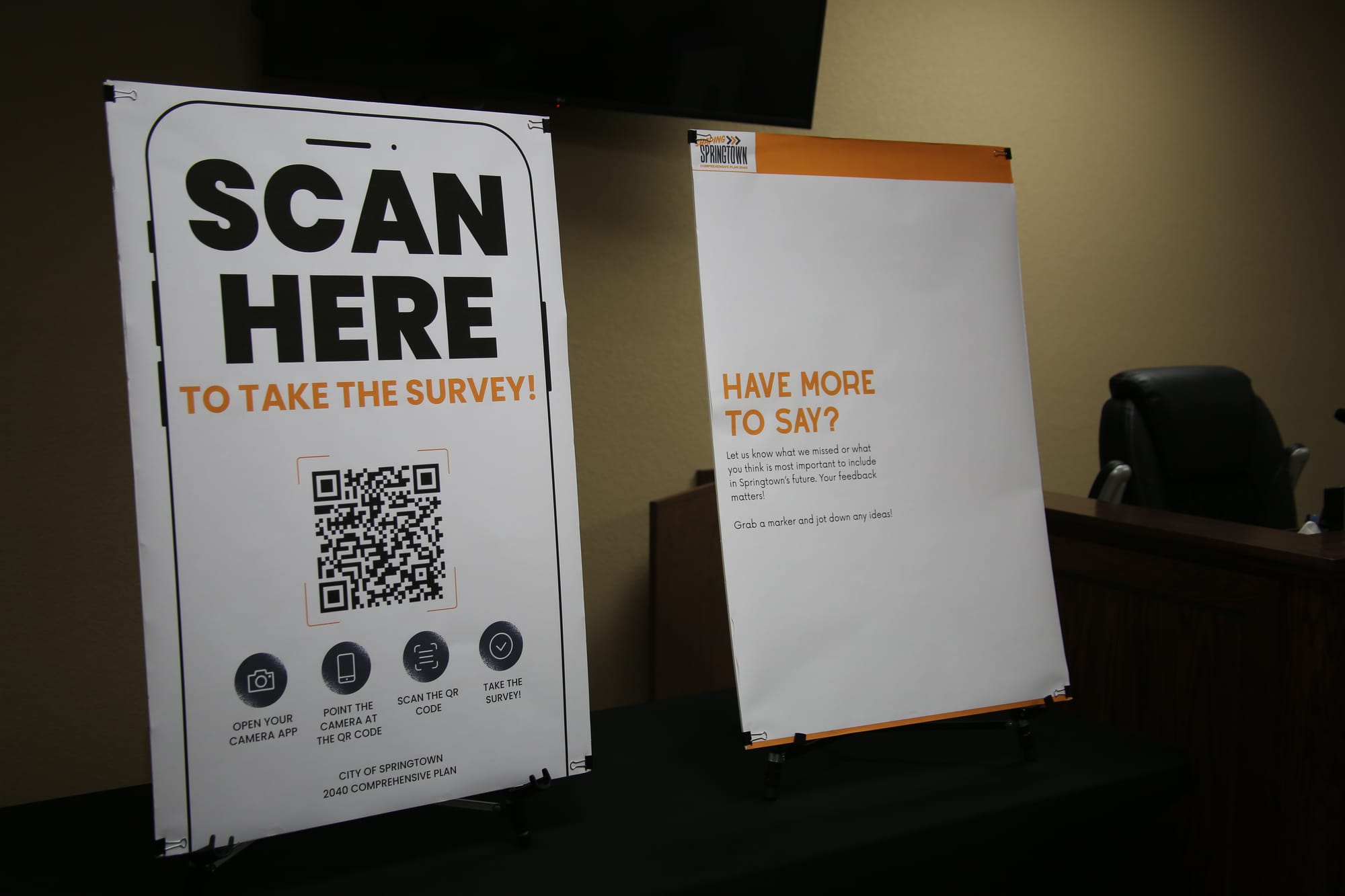 The final station concluded with a QR code that allows residents — including those unable to attend — to submit demographic information and additional feedback. City officials said the survey link will also be made available online after the town hall.